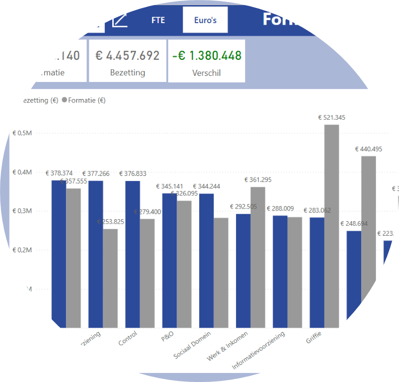 • Inzicht en sturing: houd grip op de begroting door automatische rapportages over inkomsten, uitgaven en financiële risico’s. De maandelijkse uitgaven worden automatisch gekoppeld aan begrotingsdoelen en de rapportage toont in één oogopslag of je binnen budget blijft. Je krijgt een helder beeld van financiële prestaties, beleidsvoortgang, operationele prestaties en risico’s.